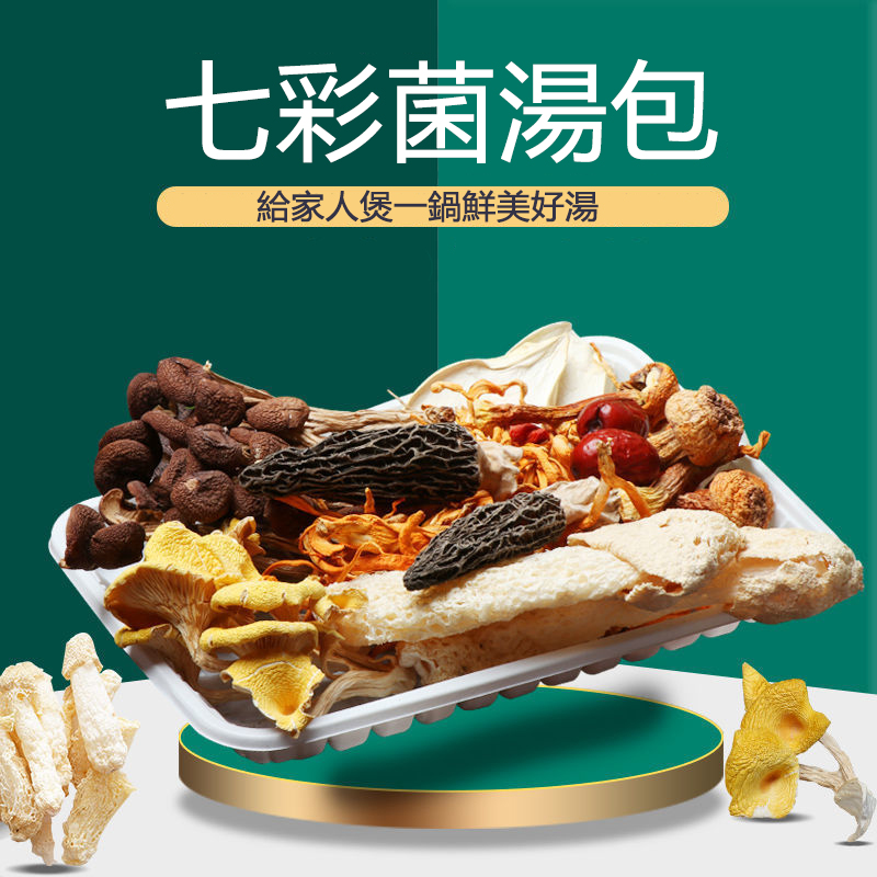 7分鐘前七彩菌湯包,鮮香濃郁,菌體肥嫩,當季乾貨,自然曬乾無硫熏,煲湯首選! - 現貨速發!密封包裝!乾淨衛生! [秋冬 季節必備的七彩野生菌湯包x5=NT$988]